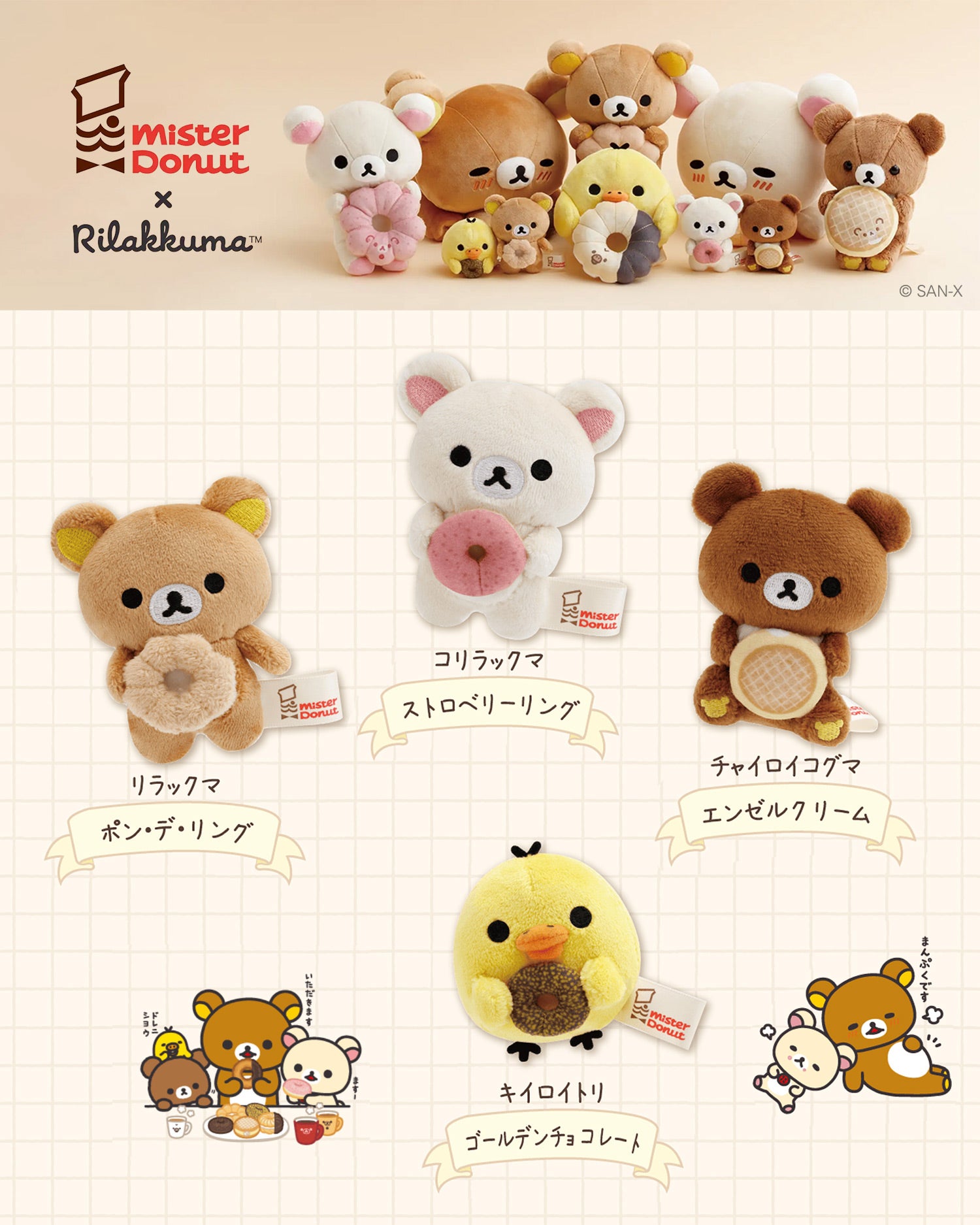 Rilakkuma | Mister Donut | Chairoikoguma (Angel Cream) Tenori Mini Plush